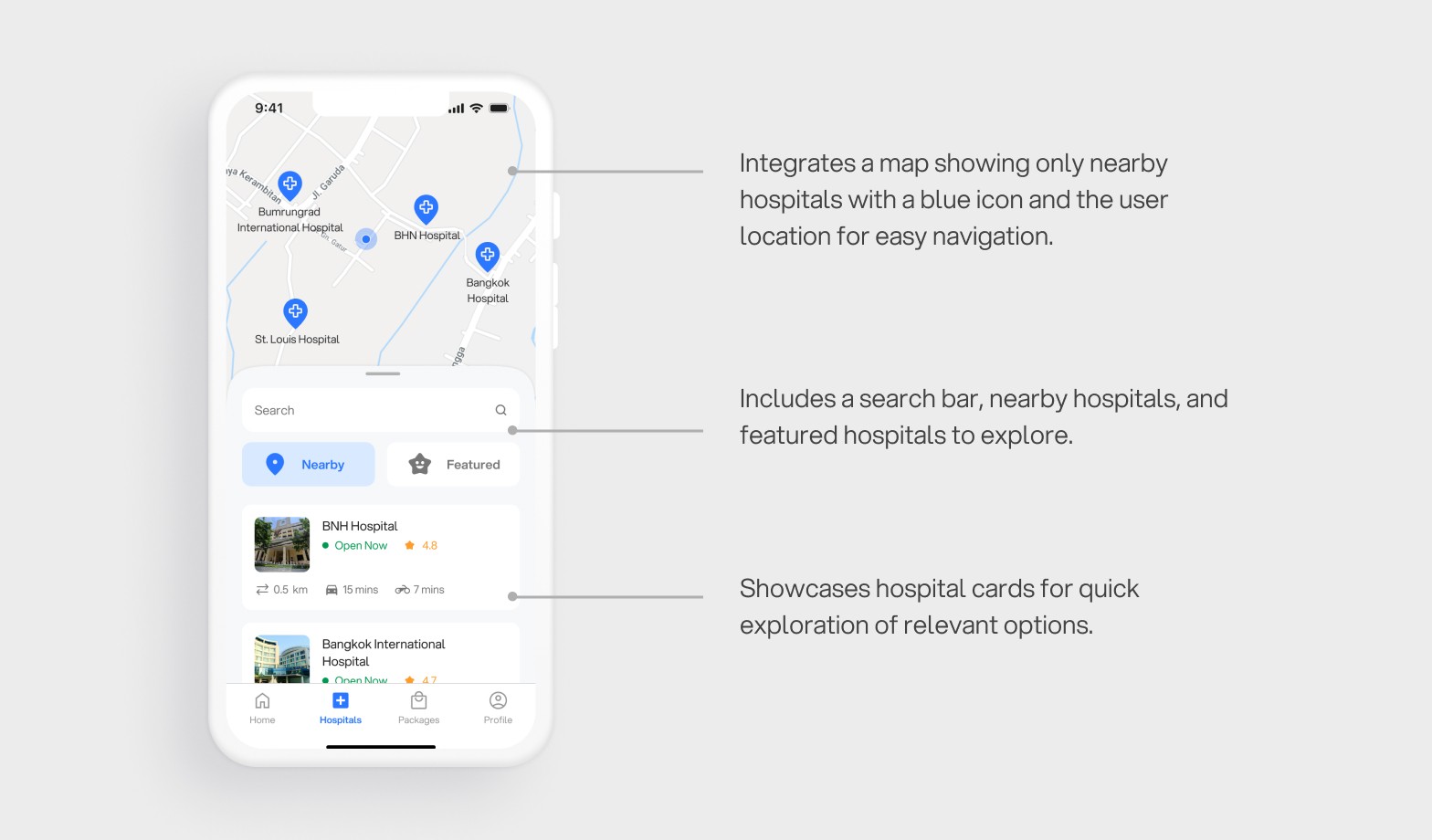 Another key insight that emerged during user feedback was that many foreigners already have local friends who can support them with hospital visits or translation services, particularly for navigating the Thai healthcare system. This feedback led us to brainstorm ways to make the app more engaging, rather than just something users rely on when they’re sick or visiting a clinic. We began exploring ideas like adding regular health tips, tricks, and news updates like healthcare updates, mental health care advice tailored for international foreigners.